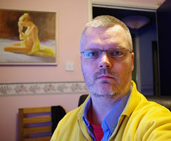 Bernard Tate and I are still in touch, and I still have one of his paintings in my office as evidenced by this recent, casual snap-shot I took of myself when testing a Pentax camera (K-x). (Bigger version of the painting itself here.)